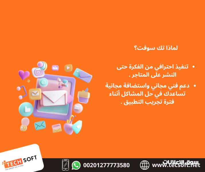 تصميم تطبيقات الهواتف مع شركة تك سوفت للحلول الذكية Tec Soft for SMART solutions
